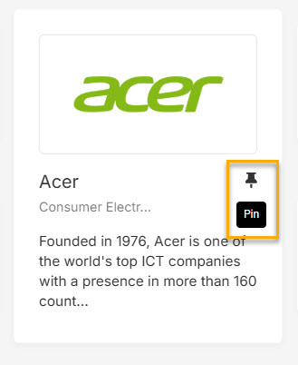 - Pin Microsite: Microsites can be pinned at the individual user level. When a microsite is pinned, it appears at the top of the Hub for that user, making it easier to access frequently used content. Any user when they are logged into the Hub simply hovers over the microsite and clicks on the pin icon.